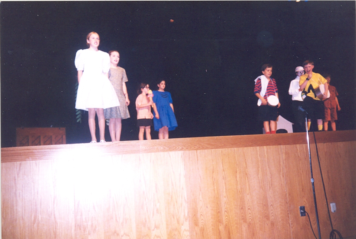 In 3rd grade, I was in a huge production called, The All Star Review. We lined up by height. I was literally the shortest (1st Row, far left).