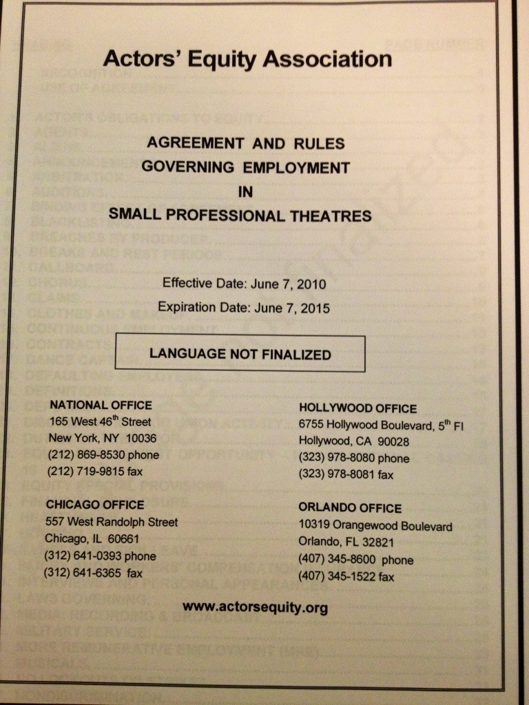 You’ll also need to send in the safe & sanitary report at some point during your rehearsals or run, which is basically just a checklist of the facilities at the theater so that Equity knows you aren’t performing in a dingy, not-up-to-fire-code basement with no dressing rooms.