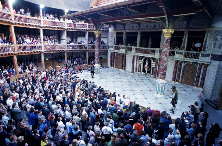 Last week I was fortunate enough to see Macbeth at the Shakespeare’s Globe by the River Thames. As I’m sure you know it is a reconstruction of the original Globe that was built by Shakespeare’s playing company, the Chamberlain’s Men. The Shakespeare’s Globe Trust continue putting on traditional Shakespeare plays, 5 each year, as well as new plays or musicals and invites in travelling companies as well. It is a magnificent building with so much detail and history behind it. There is a ‘yard’ area that holds 700 people standing and then holds 857 people sitting, split onto 3 balcony levels. The stage has a gorgeous ornate backdrop with 3 entrances and 2 fake marbled pillars; unfortunately all this beautiful detail was hidden by the set design for Macbeth. None the less it is still a gorgeous venue, which I look forward to visiting again, even in the cold and rain.